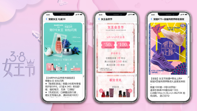 对于疫情期间的女性消费市场而言,结合节日,对品牌客户针对性的发送疫情防护通知和品牌活动信息,更容易被用户快速认可。众所周知,女性更注重情感思维模式,富有品牌特色的关怀提醒,更能抓住了女性消费者的心,调动她们的购物欲望。而富信生动的视觉画面、直观的互动活动宣传,就充分满足了这一点。现在富信已经得到了越来越多大品牌的青睐。如雅诗兰黛、欧莱雅、安踏、法菲琦等品牌运用富信新媒体的特点,在新品预热、活动推广、品牌宣传、疫情关怀等应用场景实现消息高效触达宣传,不仅加强了用户的互动感和参与感,还有效提高了企业的营销效益。